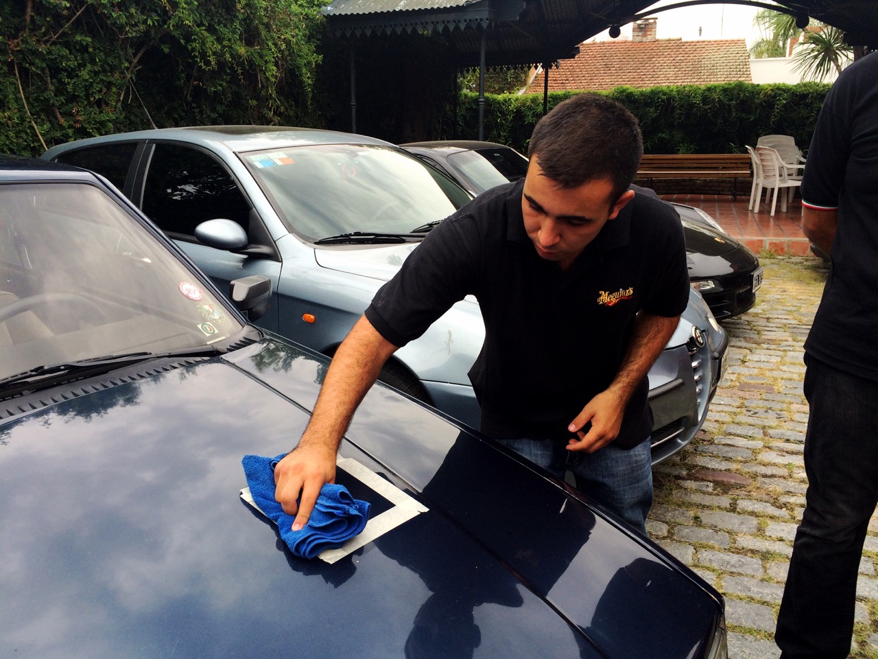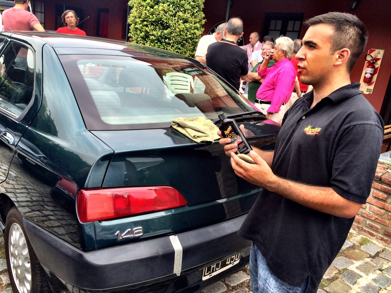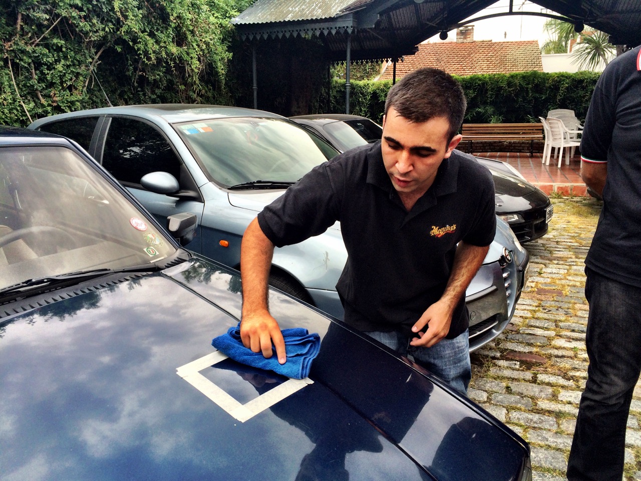 Apenas pasado el medio dia con entrada de pizzetas y spritz para afrontar el calor, comenzó la demostración del representante de Meguiars, sponsor que nos acompaña en nuestros eventos. Bajo la atenta mirada de los socios se procedió a mostrar el antes y el después de diferentes productos de la marca sobre los autos de los socios, mostrando una notable diferencia tanto en plásticos como en chapa. Lamentablemente no había productos a la venta, pero todos se fueron con una bonita gorra y la promesa de que en el próximo evento del Club tendremos la posibilidad de adquirirlos exclusivamente.