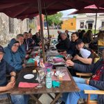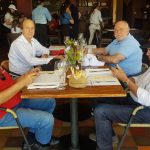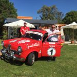 Descanso reparador, una ducha y a vestirse como pa’ ir de fiesta, que de eso se trataba. Nos esperaba el comodísimo salón comedor, preparado para nosotros exclusivamente, marco más que adecuado para abrir oficialmente el Rally Aniversario en su 37ma edición. La comida rica, como de quien sabe tratarnos con indulgencia. A los postres, el director de la prueba y vicepresidente del Club Alfa Romeo, Daniel Alegre, nuestro presidente, Juani Mártire, y el señor de las gomitas, Alberto Domingo, nos dieron una vasta y paciente explicación sobre la parte deportiva del Rally. Después, entrega de números, cuaderno de ruta, calcos, etc. y cierre de la primera actividad gastronómica oficial.