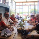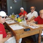 Afortunadamente, en Carmelo nos esperaba el mejor remedio para el bochornoso desempeño, un almuerzo en un lugar de ensueño. la comida riquísima y muy sutil, los amigos de esa cocina saben manejar los sabores con rienda de seda. La entrada, unas simples croquetas de acelga con fileto, estaban para chuparse los dedos. La pasta que siguió, otra poesía. El manejo sutil de los sabores convierte un plato sencillo en una delicia angelical. Postre, café. El vino de la bodega, un corte de uvas rojas bien joven y brioso, como se usa ahora. Después la foto en el parque y una vez más las ganas de que la jornada no termine ahí nomás.